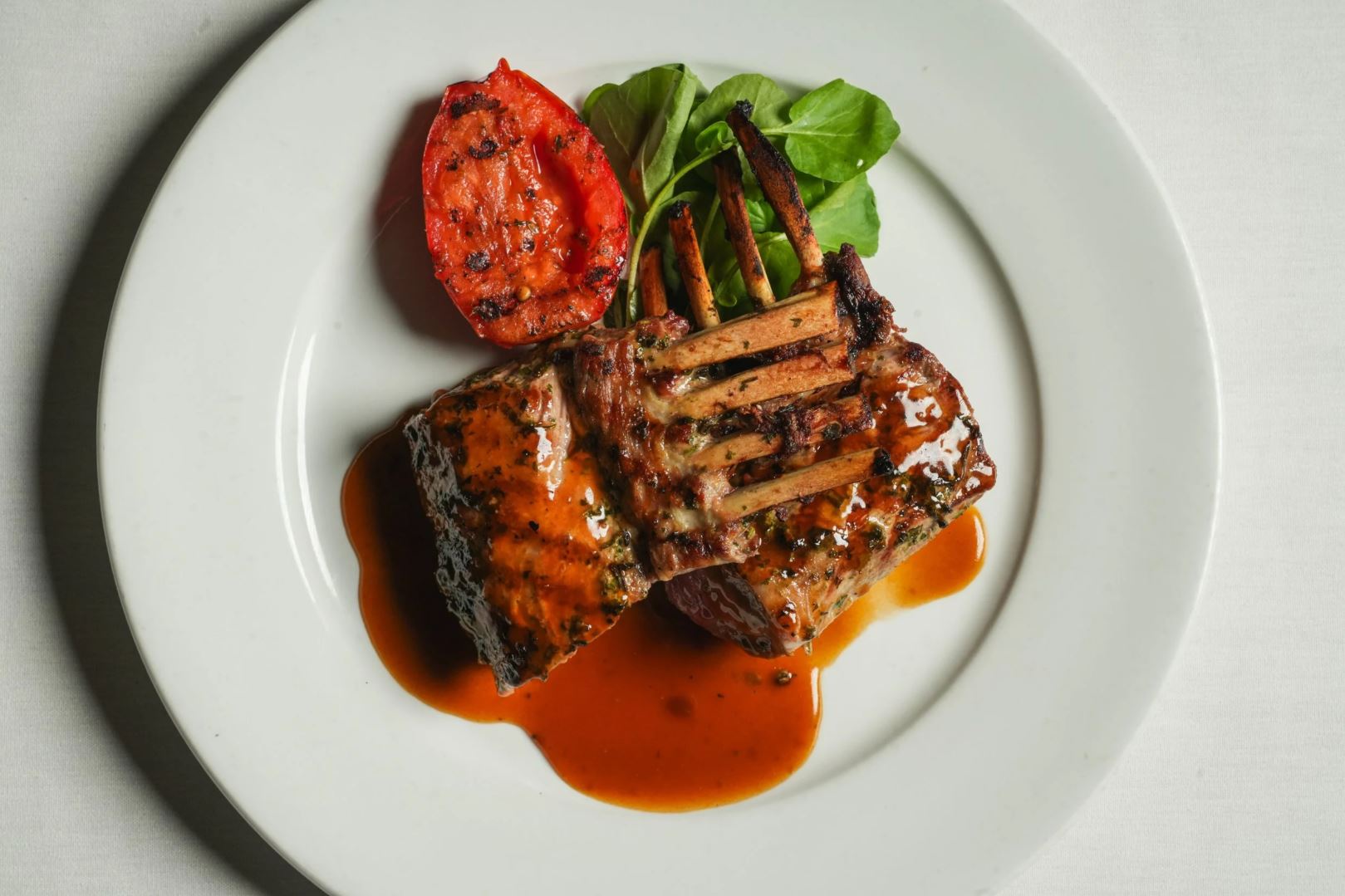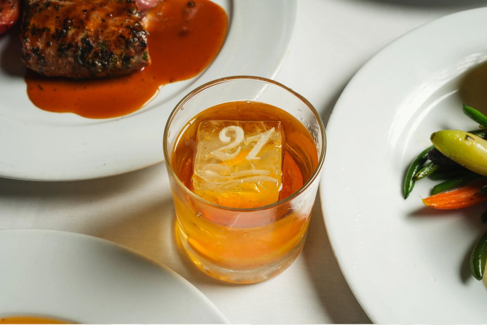 Vanilla & Chocolate Gelato in a Chocolate Shell, Cinnamon Dusted Almonds, Cherry Center