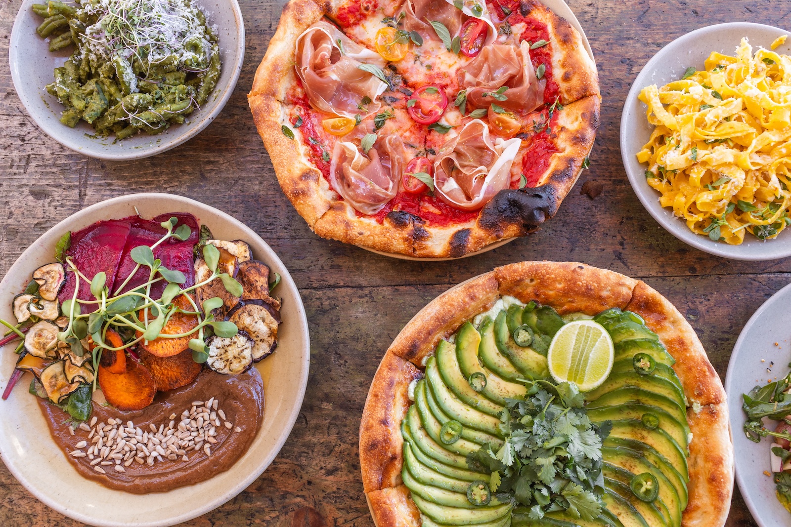 Wood Fired Carrots - served with hot agave dip & labneh herb yogurt and an arugula salad with shaved carrot ribbons, frisée and citrus dressing